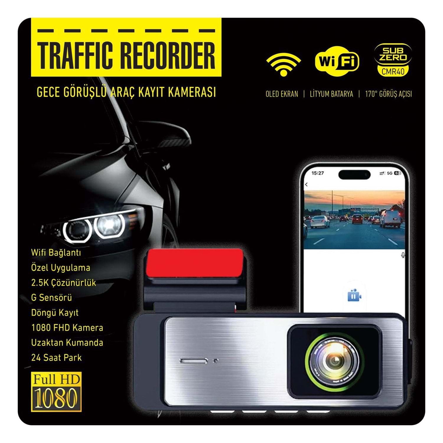 SUBZERO CMR40 GECE GÖRÜŞLÜ İKİ KAMERALI WİFİLİ ARAÇ KAMERASI